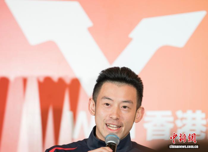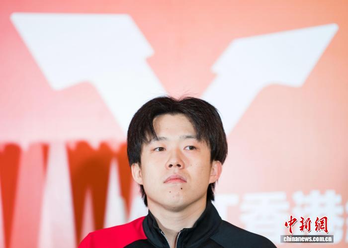 图为中原喷鼻港选脚黄镇廷正在抽签典礼上问问。记者 侯宇 摄